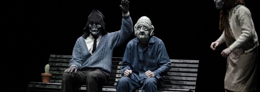 In una scena vuota, con una panchina al centro del palcoscenico ed una luce intermittente a fianco, la Morte sta seduta in attesa del prossimo (sfortunato) passante costretto a passare a miglior vita. È una figura calma, che ripete con metodica precisione le procedure di accreditamento del compassato che si trova a bussare alle sue porte. È in questa attesa perenne che la morte si imbatte però in personaggi tutti diversi l’uno dall’altro, chi rassegnato al sopraggiungere della morte, chi ostinatamente zelante del trapasso tentando invano di suicidarsi, chi invece riesce a scamparla all’ultimo, tornando in vita dopo un incidente in moto. In questa miscellanea di protagonisti, la Morte, senza parlare, dà il benvenuto ai malcapitati in una dimensione sospesa, a tratti paradossale. Paradossale perché il regista Pippa, con gli interpreti sulla scena (Giovanni Longhin, Andrea Panigatti, Sandro Pivotti, Matteo Vitanza) riescono a giocare brillantemente con il tema della morte, grazie alla capacità di rendere questo spettacolo un grottesco quanto esilarante viaggio nel trapasso finale. Lo fanno con educazione e con eleganza, con un’ironia velata che, in assenza di dialoghi, centra la comunicazione teatrale sui movimenti, sulle azioni di questi personaggi che si guardano, si avvicinano, si osservano, talvolta guardano alle quinte quasi prefigurando un cambio di dimensione tra quello che c’è in palcoscenico e quello che invece continua a essere nascosto al pubblico. L’artifizio scenico, perfezionato dall’uso di maschere di cartapesta, si rende curioso e divertente per lo spettatore, che anche in assenza di comunicazione resta interessato allo svolgimento della rappresentazione ed a comprendere quel paradossale quanto grottesco filo logico come verrà dipanato dai personaggi sulla scena.