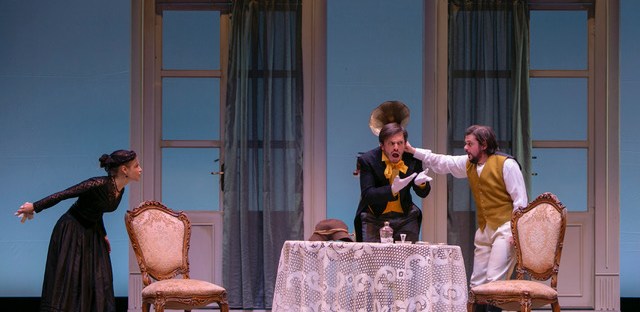 Mirra, Russo e Florio regalano allo spettatore interpretazioni convincenti dei loro personaggi, giocando con bravura in questi ruoli che si prestano ad una tipizzazione marcata, ma non stereotipata, dei soggetti portati in scena. La rappresentazione riesce infatti, senza particolari orpelli scenografici, a concentrarsi sulla recitazione degli attori, ponendo enfasi sulle storie, sapientamente traslate dalla più classica ambientazione russa proposta dall’autore originale, alla nuova e suggestiva dimensione partenopea firmata da Agostino Pannone. Anche in questo caso, la trasposizione è creativa, coerente con il testo originale, regalando brio e freschezza al testo in una chiave sicuramente inedita. La regia di Pannone imprime ai suoi personaggi delle maschere divertenti grazie al maggiordomo interpretato da Matteo Florio ne L’orso con echi pulcinelleschi o il duo padre-figlia della Domanda di Matrimonio di Russo e Mirra con rimandi alla commedia familiare scarpettiana.