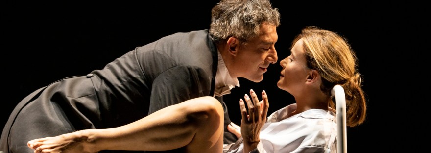 È in questo gioco di sguardi che si palesa il rapporto dei due personaggi in scena, interpretati da Filippo Timi e Lucia Mascino, che dai successi televisivi (con I Delitti del Bar Lume) approdano in palcoscenico con un testo di prosa contemporanea francese accattivante, denso di significati. I due protagonisti, nel loro affiatamento scenico, conducono un gioco dell’eros che non conosce soluzioni di razionalità, trascinati come sono da un interesse reciproco che gradualmente li spinge ad aprirsi e ascoltarsi, per poi arrivare ad amarsi follemente. Quella di Mascino e Timi è un’interpretazione coerente con i diversi significati del testo, in cui i due diventano soggetti significanti che giocano con il pubblico, si divertono a scoprire e a scoprirsi nel dialogo con l’altro durante le diverse fasi delle loro vite. I diversi momenti del recitato scandiscono il corso degli incontri, fugaci o programmati, in cui parlano, in occasione della loro “passeggiata di salute”, appunto.