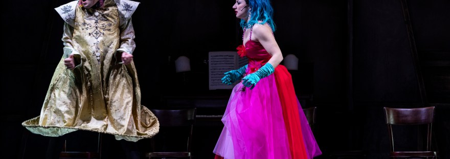 Il percorso di “transizione” di Nannina, la Santarella appunto (in questo spettacolo interpretata dalla istrionica Angela De Matteo), racconta di una donna che, dopo aver frequentato per anni il convento delle Rondinelle, scopre il teatro, il divertimento e – soprattutto- l’amore. Le sue avventure non possono che essere accompagnate dalla maschera che ha reso celebre nella storia del teatro italiano ed europeo Eduardo Scarpetta: Felice Sciosciammocca. In questo spettacolo, Don Felice, interpretato da un Massimo De Matteo con una prova attoriale convincente, ha una doppia vita: è, al contempo, organista del convento delle Rondinelle e anche autore de “La figlia dell’imperatore”, l’operetta ormai prossima al debutto al Teatro Fondo di Napoli.